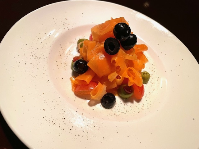 人参とオリーブのマリネ 春菊と柚子とツナのチョップサラダ 4種のキノコのイタリアンパセリ煮込み カブのバター醤油ソテー ゴルゴンゾーラと生ハムのリゾーニ 自家製の生チョコ