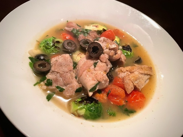 白菜の酒のつまみサラダ 芽キャベツとベーコンとエリンギのソテー 蓮根とキノコの春菊煮込み カブと鶏肉のグラタン 鶏挽肉と秋田県産ホップのリゾーニ 自家製の生チョコ