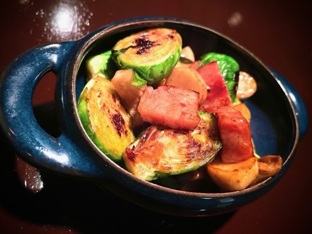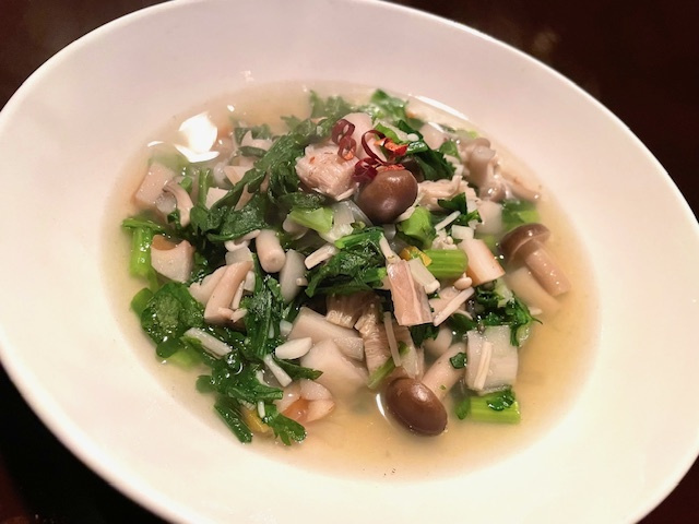 白菜の酒のつまみサラダ 芽キャベツとベーコンとエリンギのソテー 蓮根とキノコの春菊煮込み カブと鶏肉のグラタン 鶏挽肉と秋田県産ホップのリゾーニ 自家製の生チョコ